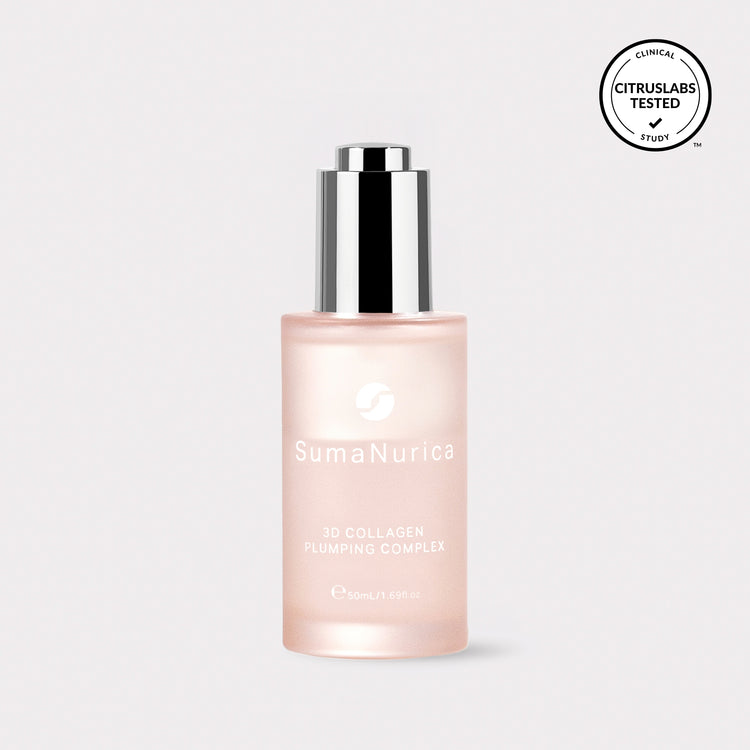SumaNurica’s Patented Synthesised Collagen Essence is a unique, bioengineered ingredient designed to mimic the natural collagen in your skin. Collagen is the protein responsible for keeping your skin firm, smooth, and youthful. Through advanced fermentation and purification techniques, our Collagen Essence helps deeply hydrate the skin, improve elasticity, and maintain a healthy skin barrier. The formulation combines types I and III collagen in a balanced ratio that mirrors the collagen levels found in baby skin. As we age, our natural collagen production decreases, leading to fine lines and sagging. Our Collagen Essence replenishes this loss, promoting plumper, firmer, and more hydrated skin, while also helping to reduce the visible signs of ageing.