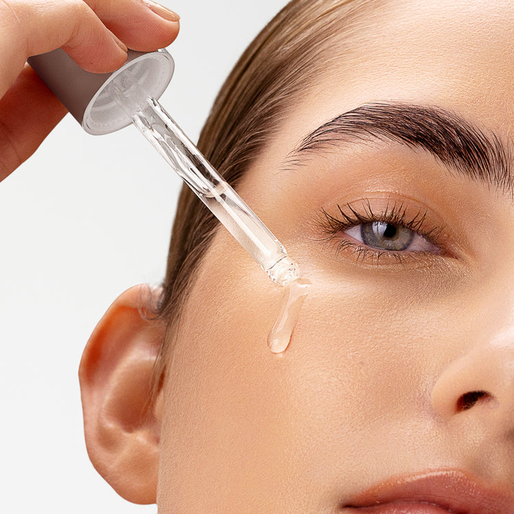 Open your serum and squeeze the dropper to draw up the solution to start applying. Use one full dropper and apply it evenly across your face, neck, and décolletage. Gently massage in upward motions until fully absorbed.