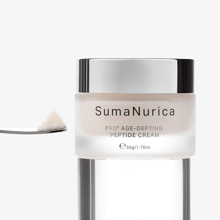 Pro5 Age-Defying Peptide Cream is formulated with many advanced active ingredients, including Acetyl Hexapeptide-8 and our Patented Synthesised Collagen Essence, which work together to stimulate collagen production, restore firmness, and smooth out fine lines and wrinkles. It’s designed to promote a youthful, radiant complexion.
